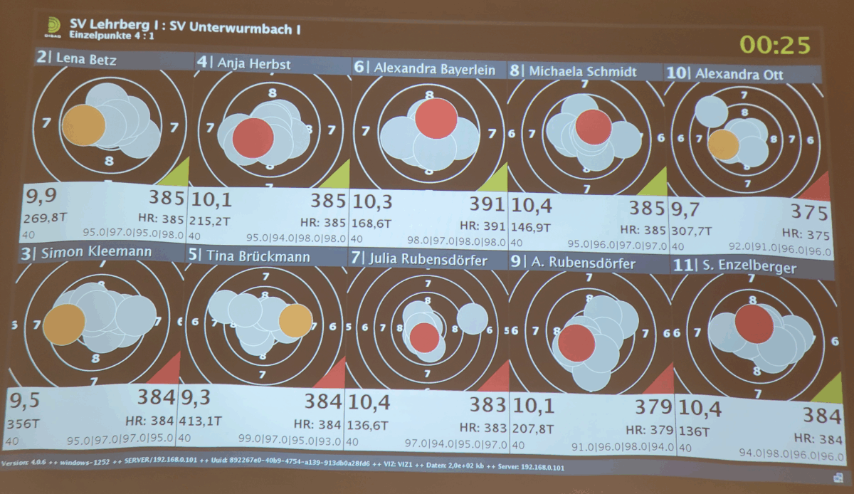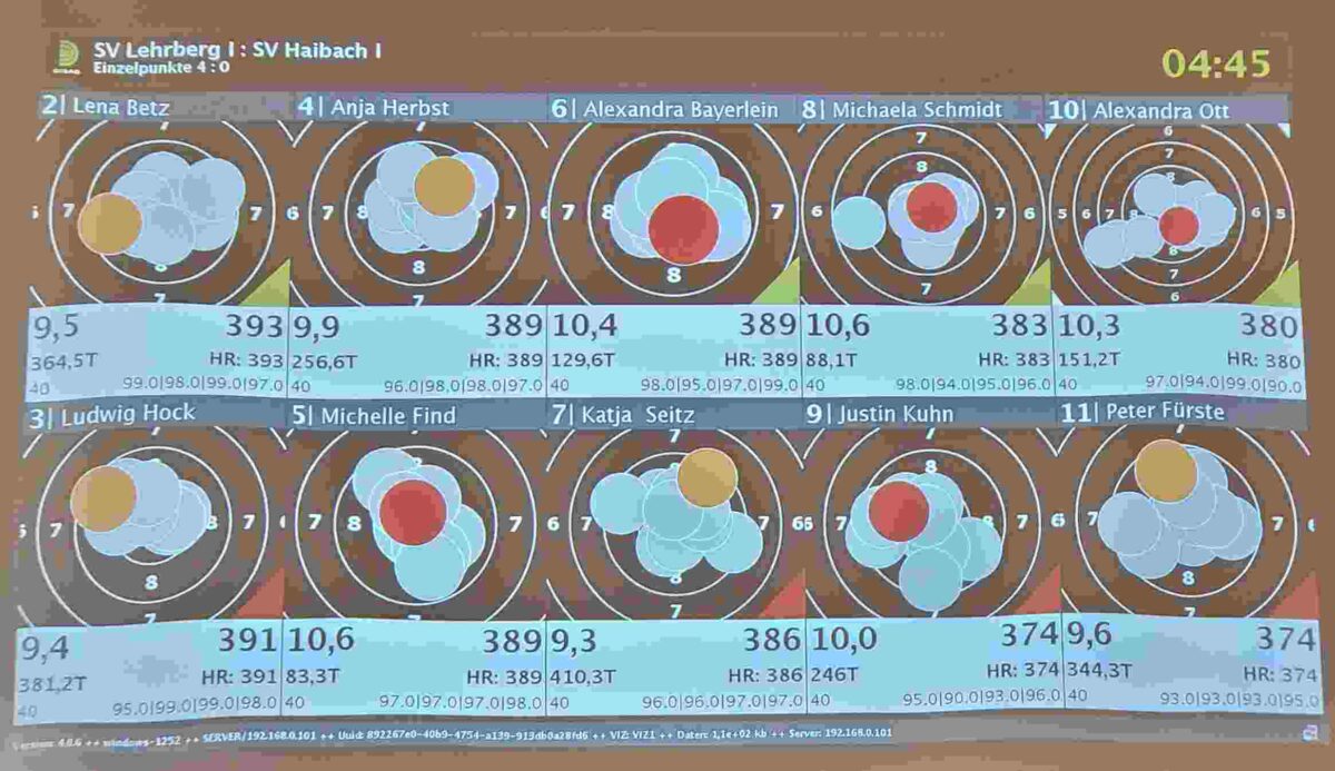 Im ersten Wettkampf traf unsere Mannschaft auf Unterwurmbach 1. Schon zu Beginn konnte der interessierte Zuschauer schnell erkennen, dass bei unserem Team ordentlich Adrenalin in die Schießjacken eingenäht war. So ein Start in eine neue Saison stellt auch für erfahrene Leistungsschütz:innen eine spezielle Herausforderung dar. Und so schlichen sich zu Beginn einige 9er und auch der eine oder andere 8er in die Serien ein. Zwischenzeitlich lag unser Termin mit 2:3 zurück, aber je länger der Wettkampf andauerte, umso mehr wichen auf der Anzeige die hässlichen gelben und grünen Schüsse einem überzeugenden Rot.