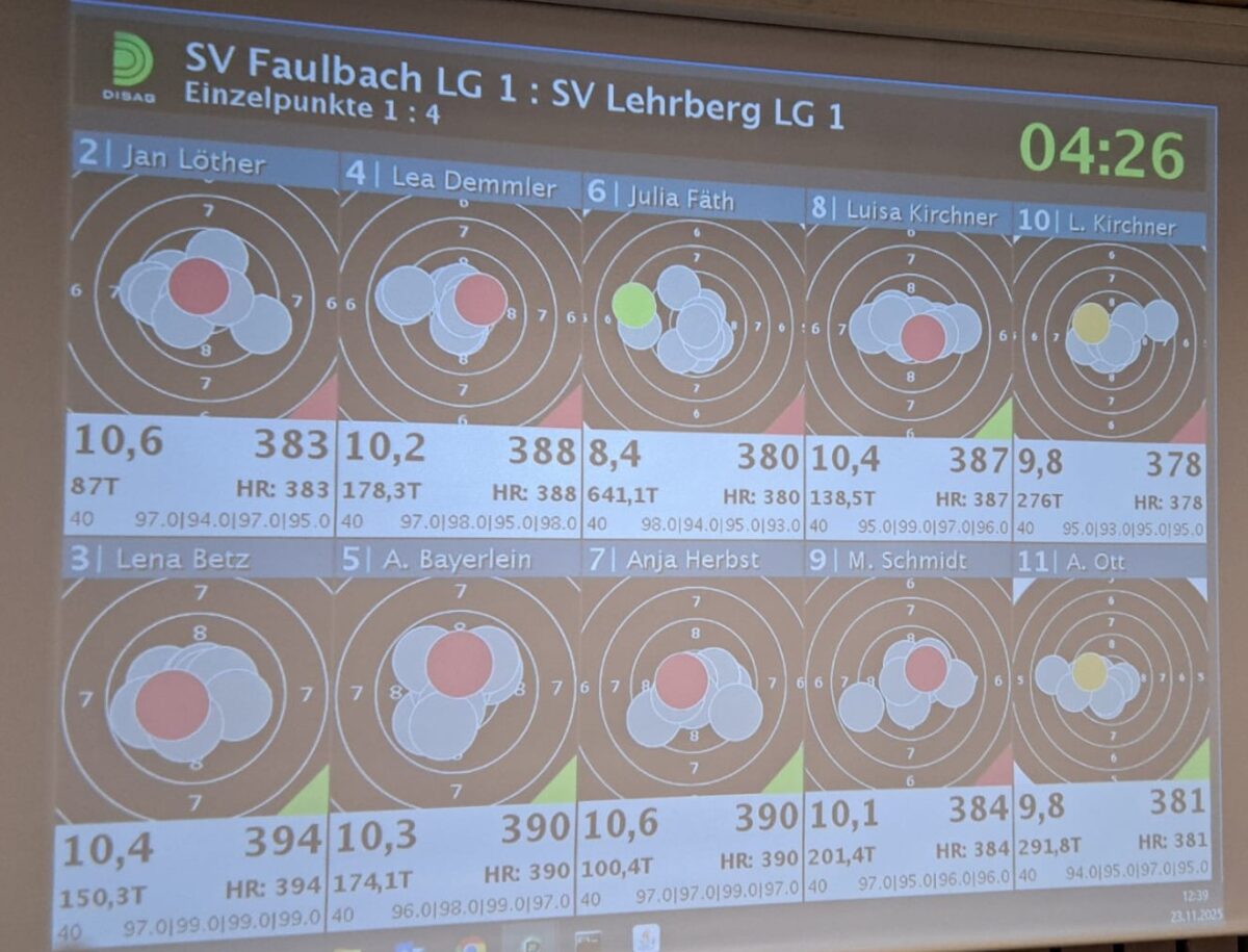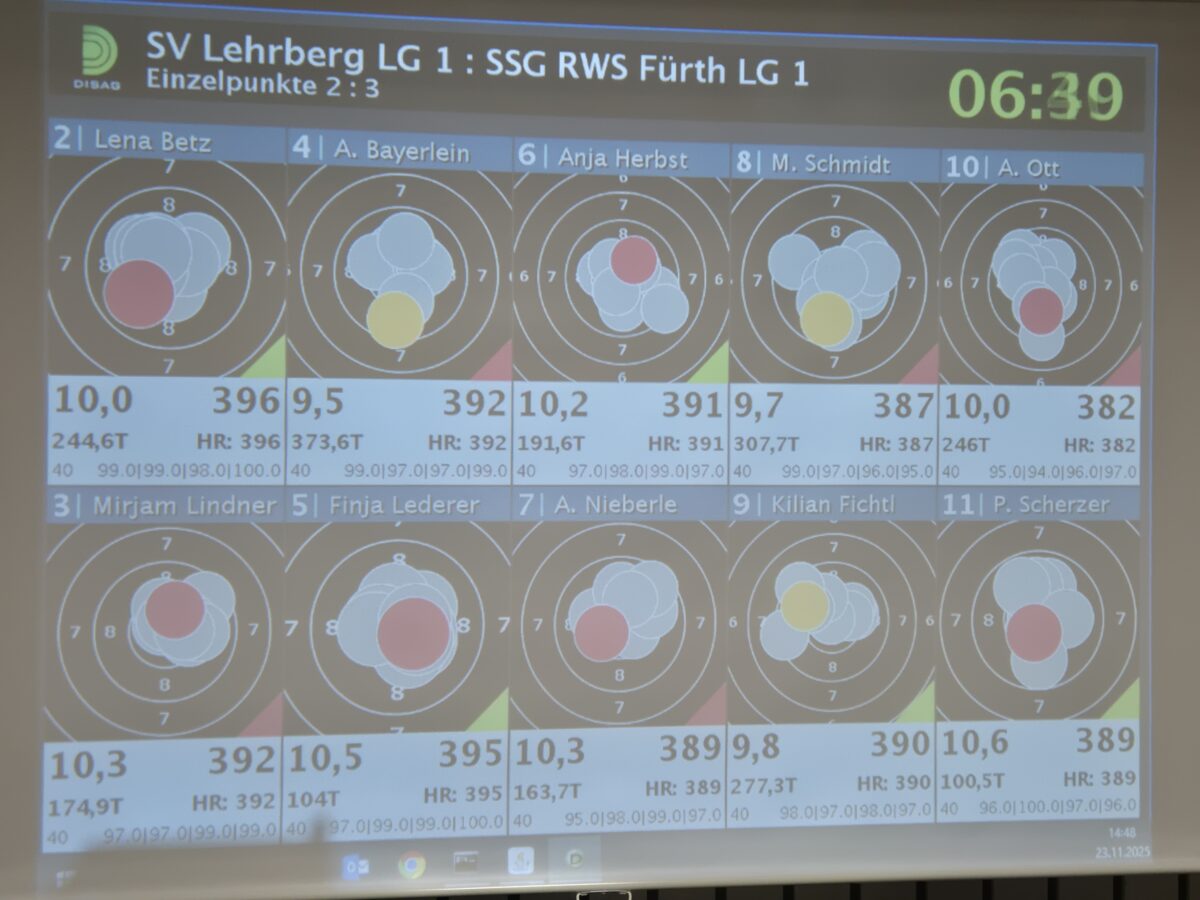 Trotz der Niederlage kann unsere Mannschaft äußerst zufrieden sein: Ringzahlen auf diesem Niveau sieht man selten – und zeigen deutlich, wie stark Lehrberg aktuell aufgestellt ist.