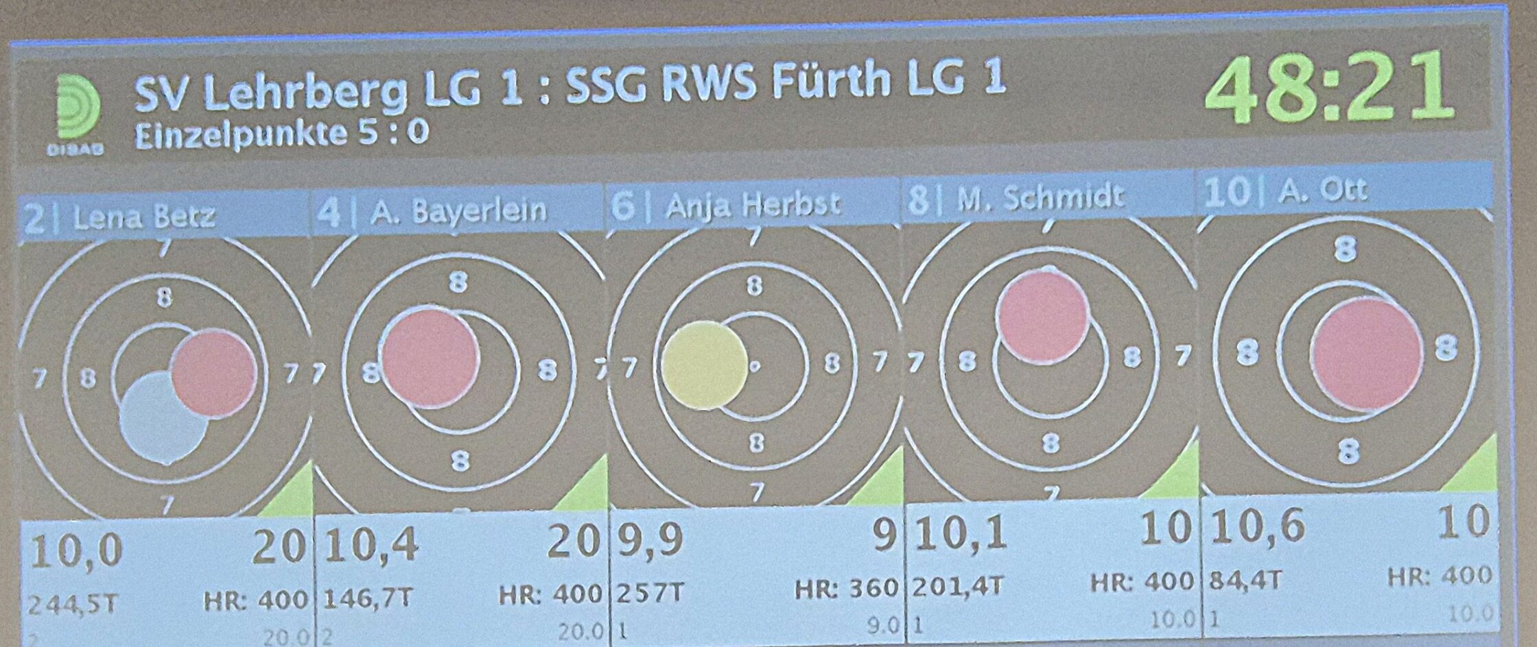 Trotz der Niederlage kann unsere Mannschaft äußerst zufrieden sein: Ringzahlen auf diesem Niveau sieht man selten – und zeigen deutlich, wie stark Lehrberg aktuell aufgestellt ist.